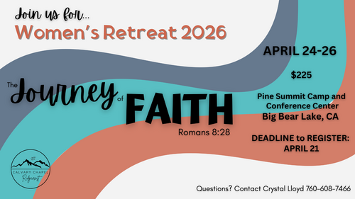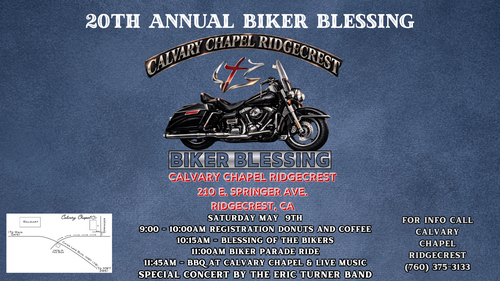 Calvary Chapel Ridgecrest has as its vision Ephesians 4:12, “...for the equipping of the saints for the work of ministry, for the edifying of the body of Christ,...“. We believe that God has called us to equip believers to become faithful ministers of God’s Word and love. We also believe that God has called us to become faithful servants to those in need both within the body of Christ and in the world. Therefore we put a great emphasis on learning to apply the Word of God in very practical ways in our everyday life and circumstances. We invite you to come join us when you are in our area. Until then, may God richly bless you.